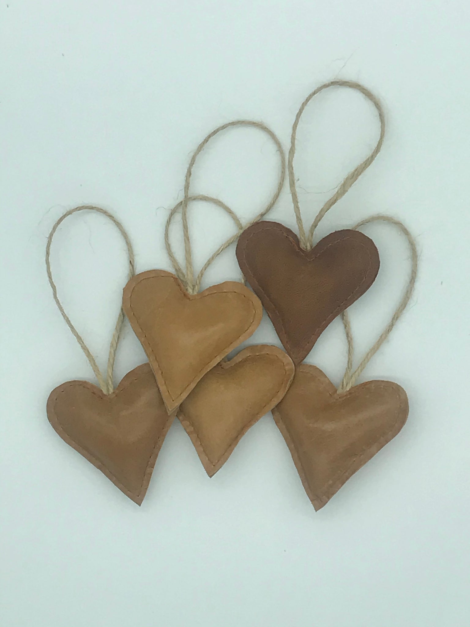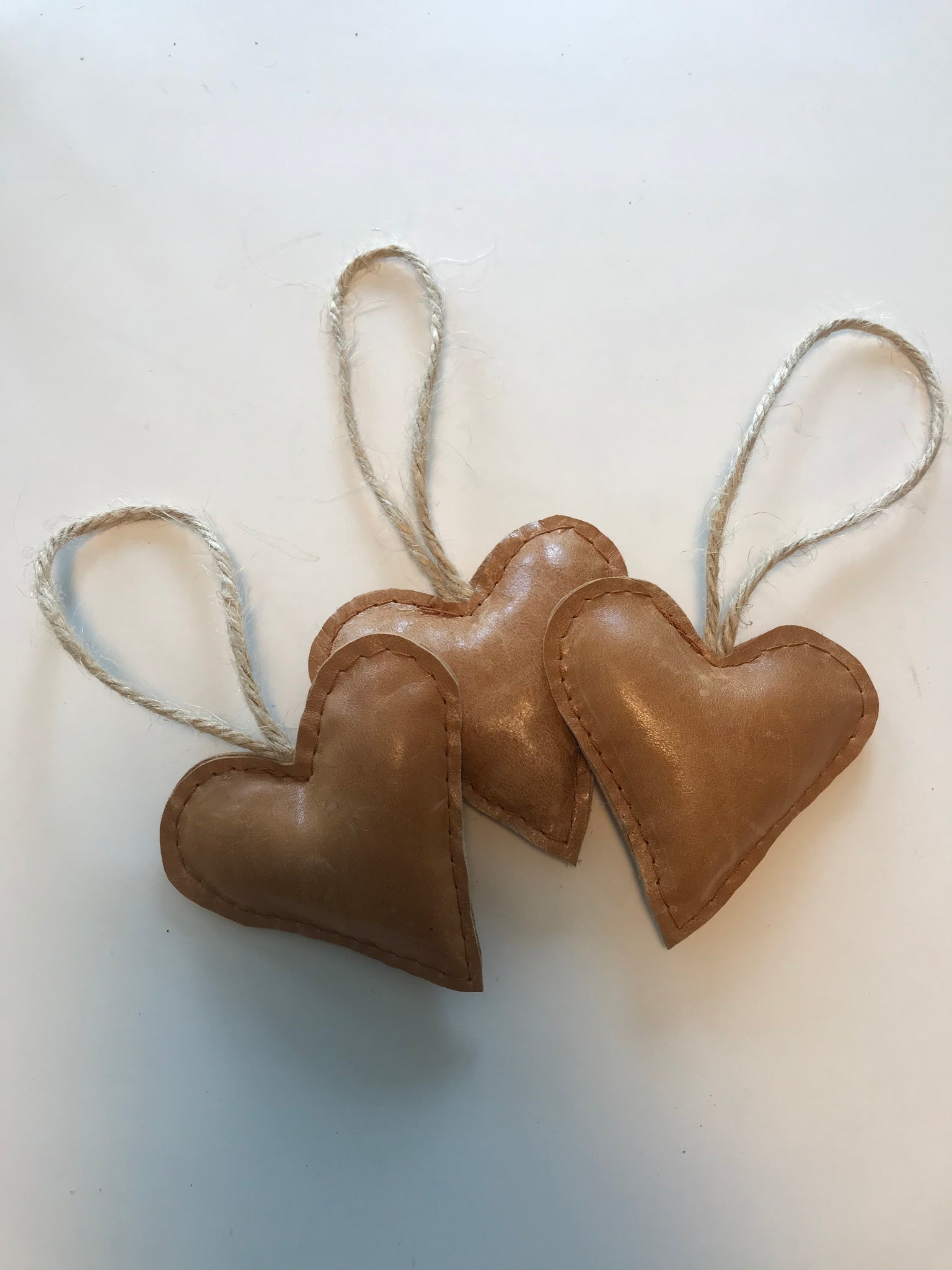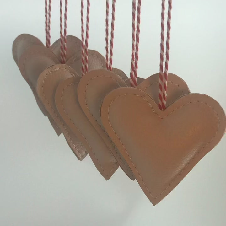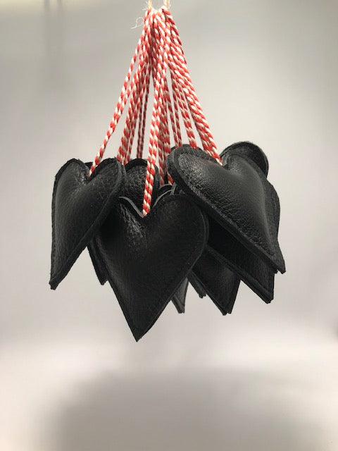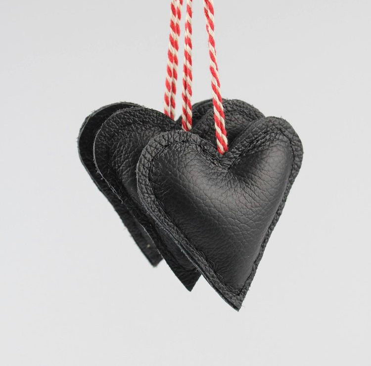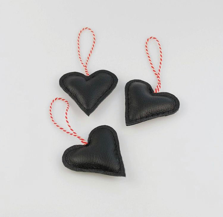3 stk skønne hjerter lavet i upcyclet læder med pudefyld af polyester.